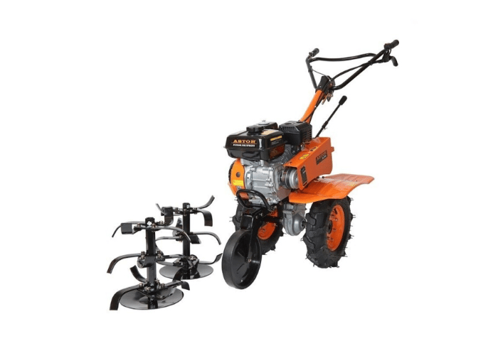 Itin galingas benzininis kultivatorius Astor A-70, skirtas dirbamai žemei apdirbti.