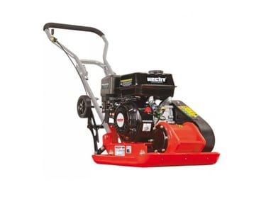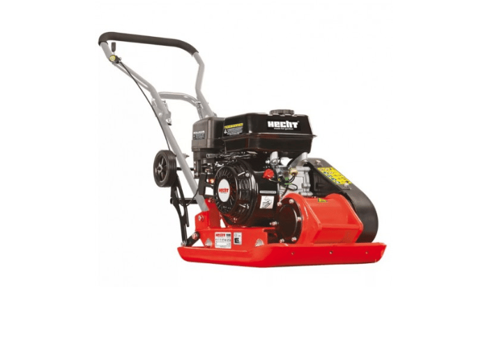 Vibro plokštė (grunto tankintojas) su patogiais transportavimo ratukais ir guminiu padu.